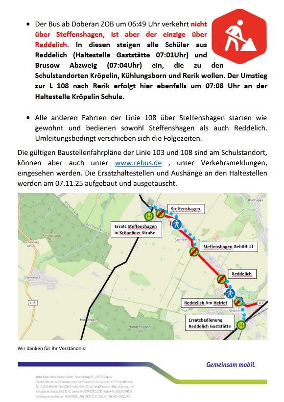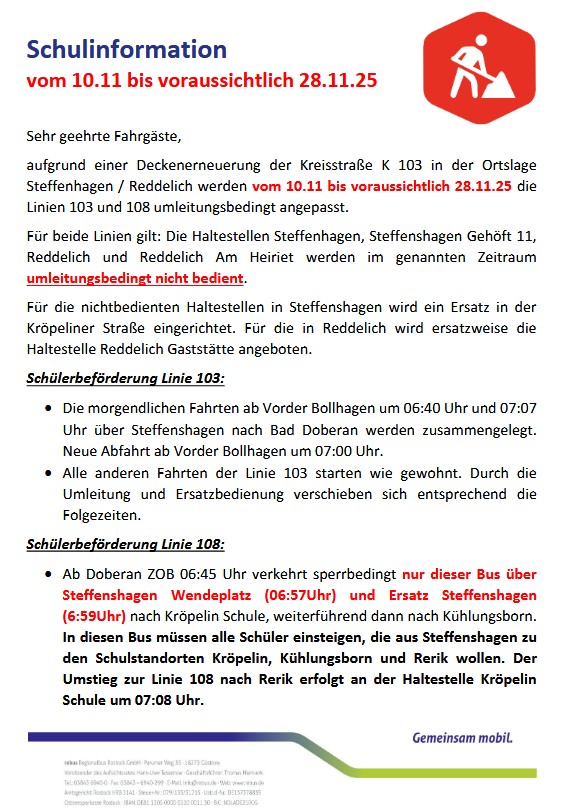 Ankündigung Vollsperrung Steffenshäger Straße vom 10.11.2025